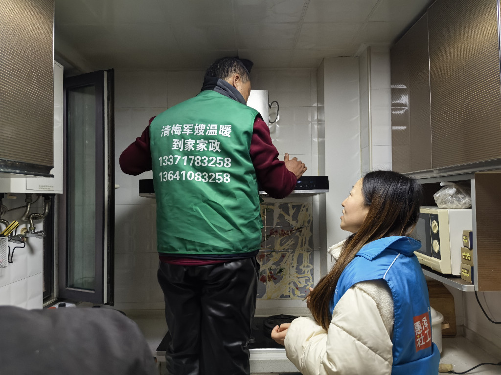 YJF社区的杨奶奶如今86岁高龄,虽有子女常来探望,但平时独自在家居住,年纪大了,手脚不便,春节前家中卫生清洁方面尤其是抽油烟机清洗,一直是她的难题。