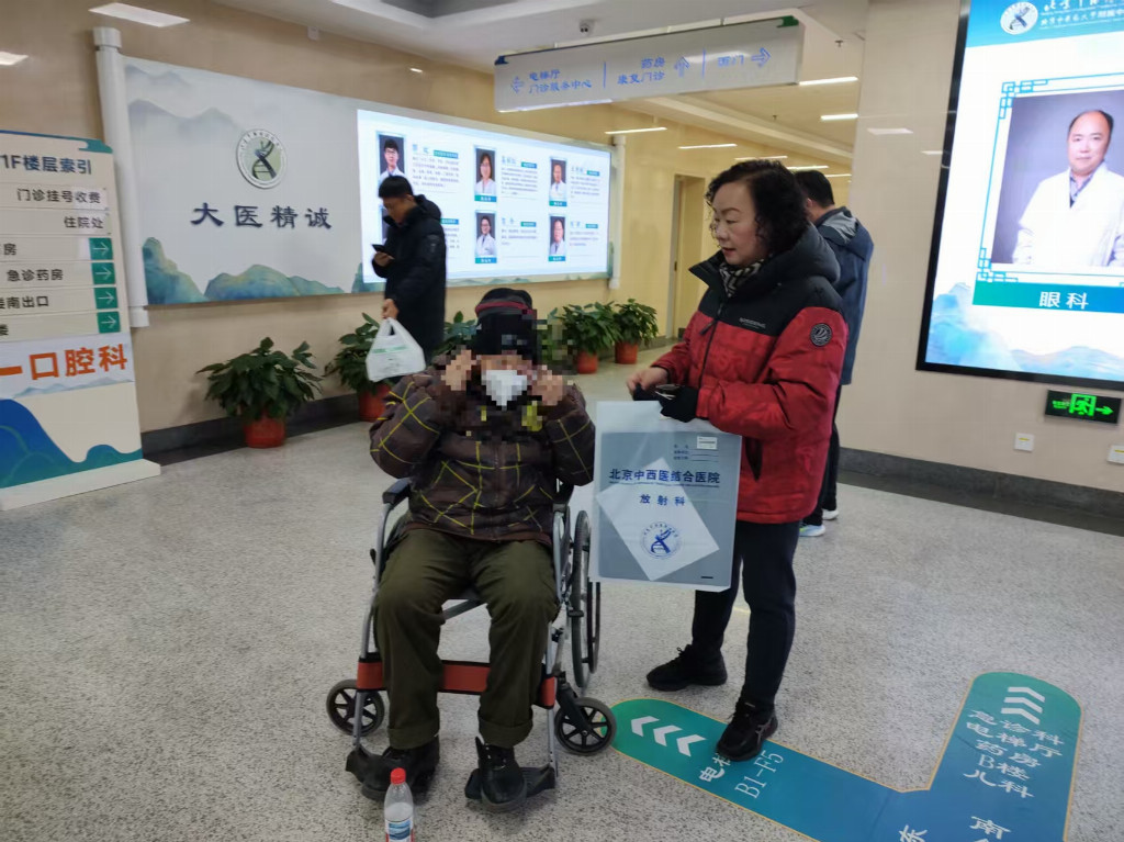 社工接到电话后,第一时间安抚老人:“您别着急,我们马上就到您家,全程陪着您儿子去医院,您放心,有我们在!”挂完电话,社工迅速赶往张叔叔家,搀扶着行动不便的张叔叔,全程陪同他前往医院检查、做CT检查、问诊。