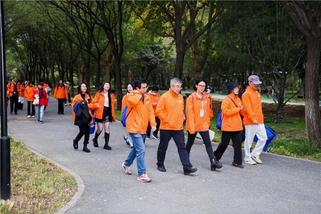 科普环节后,在场的医护人员、患者及家属一同前往博大公园,在景色宜人的深秋中开启了“同一天,一起行-美乐时刻,与爱同行”健步走环节。沿途赛道上,主办方精心设置了趣味地贴,上面印有“你已经走了600米!心率在加快,笑容也更灿烂。再坚持一点,你正在变得更强!”等暖心话语,为参与者加油鼓劲。大家迈着轻快的步伐,在运动中交流抗癌心得,分享生活点滴,感受着集体的温暖和生命的力量。